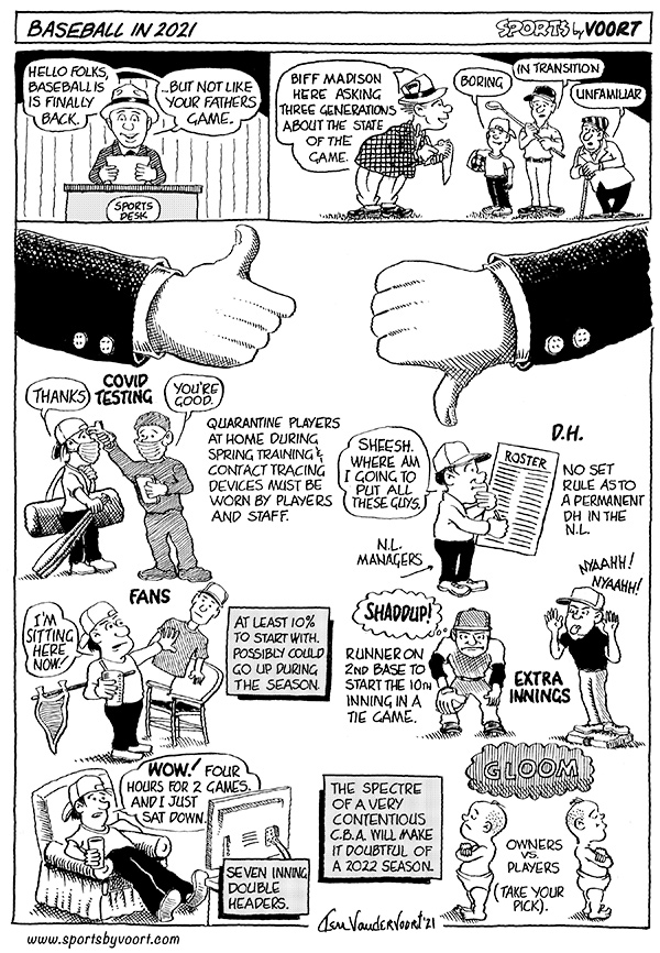 Despite the conditions that still persist, that thankfully seem to be abating, the grand game resumes its annual spring song: 'Pitchers and Catchers'. The Grapefruit and Cactus leagues will be in full swing with the usual expectations of players, managers and owners. So coming off a season that saw the two best square off in the World Series that played 60 games, the 2021 season begins with the hope of getting all 162 games played and minimal postponements due to Covid. It will require constant testing and other safeguards. That's a given. However, there's the backdrop of bad blood between the owners and players that threaten the future of the game. This has been festering for some time and it's only get worse as the season winds down and the Collective Bargaining Agreement begins in the off-season. Don't hold your breath for a civil sit-down. This will make 1994 seem like a cake walk. And that episode nearly brought down the best game ever originated.